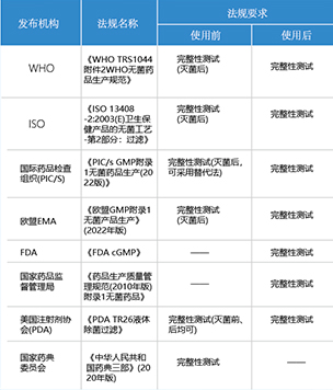 根據(jù)EU 新版 GMP 的相關(guān)規(guī)定“8.87 The integrity of the sterilised filter assembly should be verified by integrity testing before use (pre-use post sterilisation integrity test or PUPSIT), to check for damage and loss of integrity caused by the filter preparation prior to use.