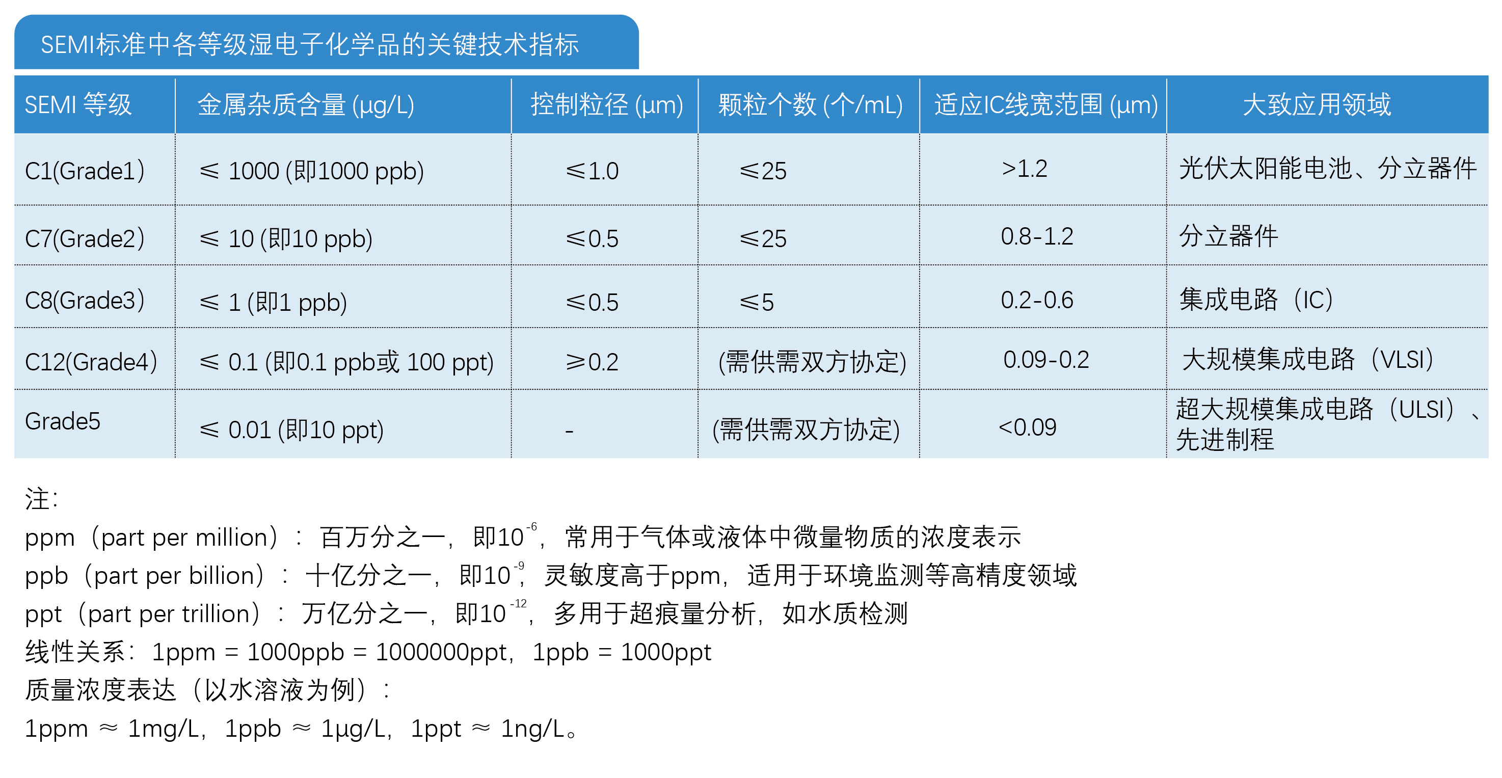 濕電子化學(xué)品純度等級(jí)標(biāo)準(zhǔn)(SEMI)