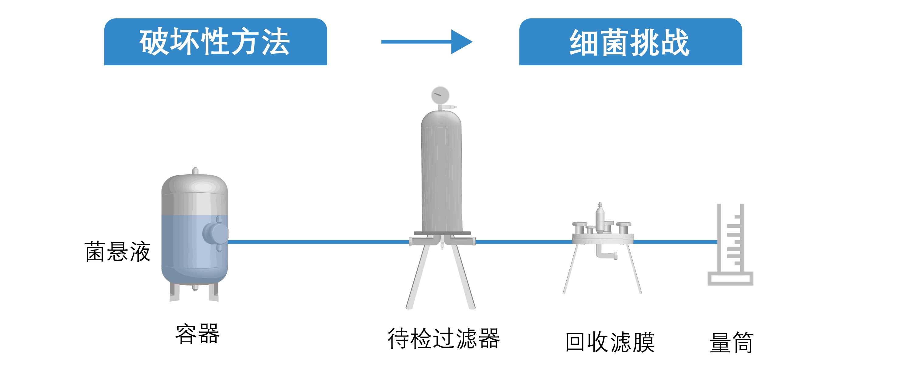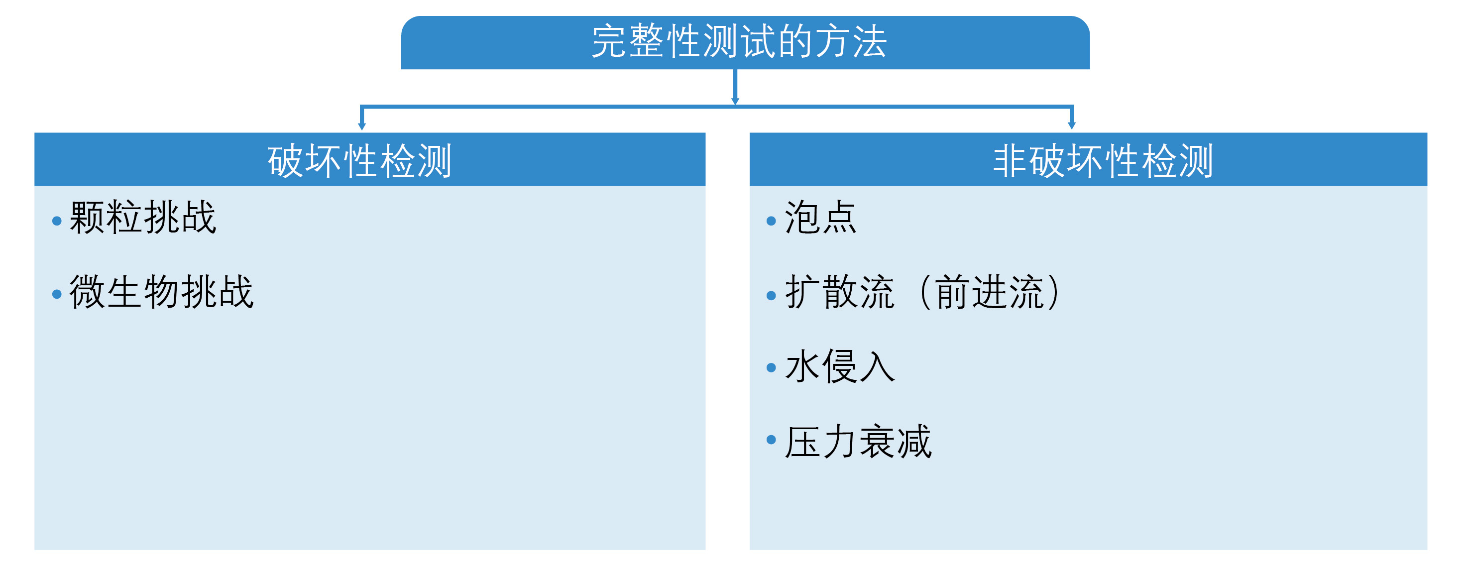 是指直接進行細菌挑戰(zhàn),使用至少達到10?CFU/cm2過濾面積濃度的缺陷假單胞菌 (P. diminuta) 進行挑戰(zhàn),確認待檢過濾器是否可以產(chǎn)生無菌濾出液。