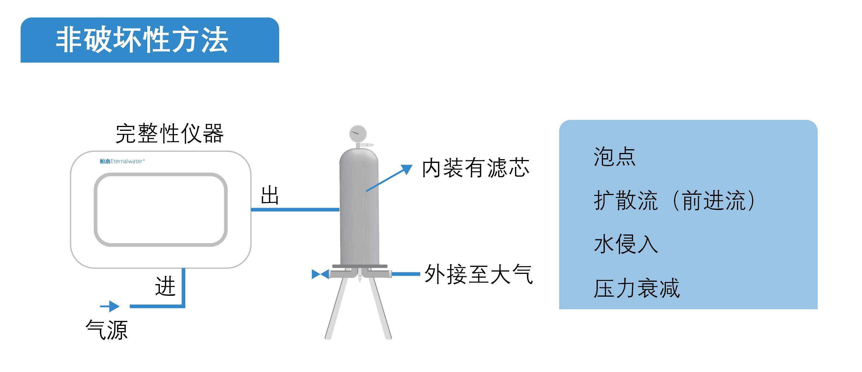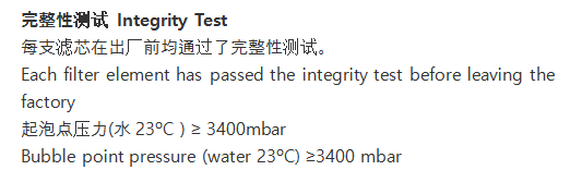2.水侵入測試的濾芯為強疏水濾芯且測試時濾芯需要保持干燥